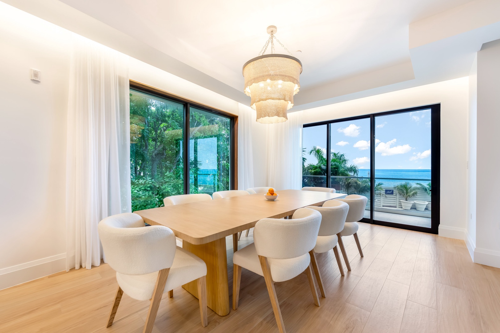Formal dining area with ocean views.