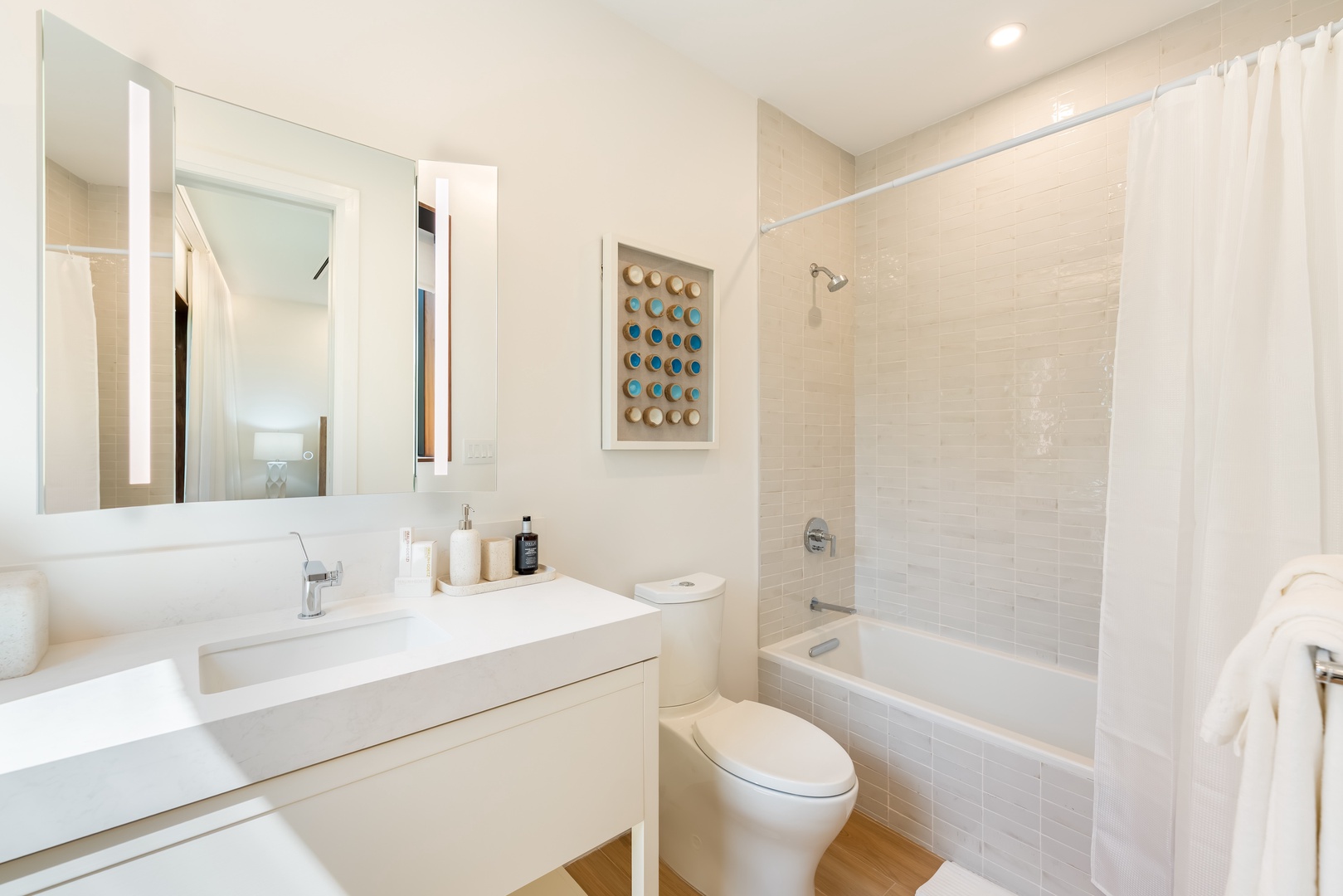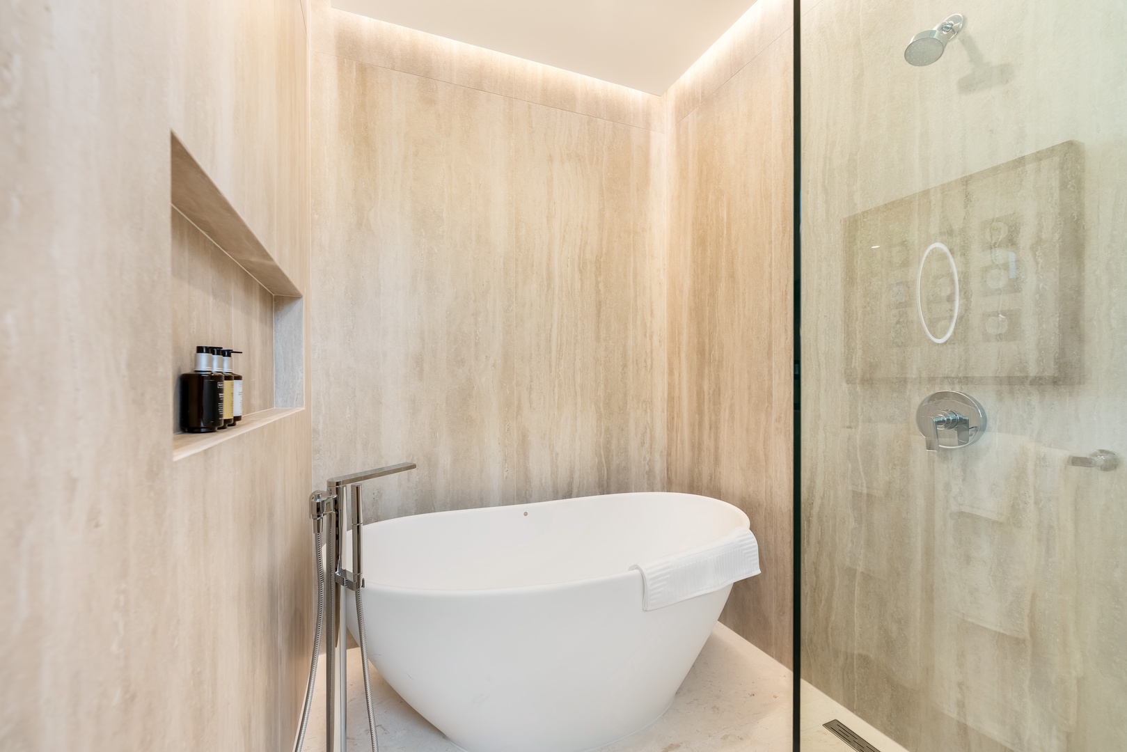 Bedroom 1 ensuite is also equipped with a soaking bathtub and shower.